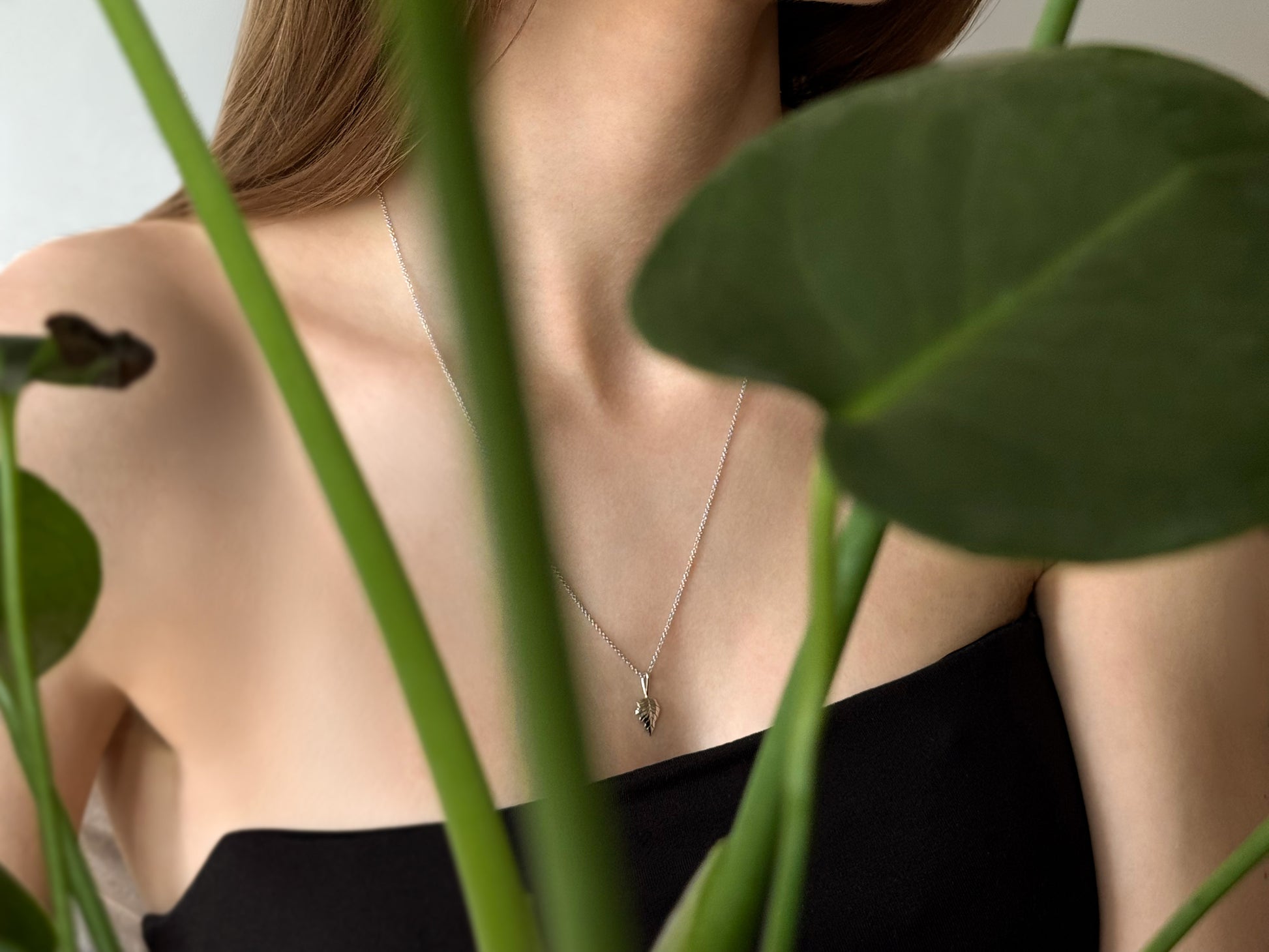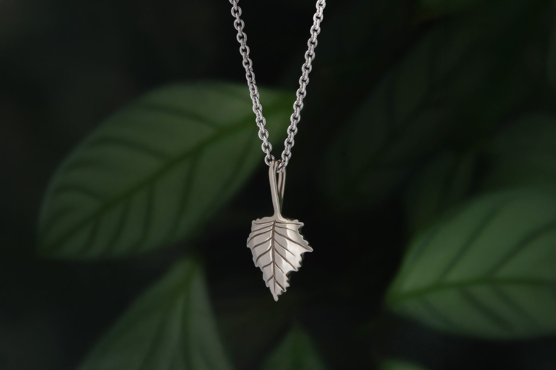 Minimalistinio stiliaus balto aukso pakabukas "Beržo lapelis". Puikiai tiks devėti kasdien.